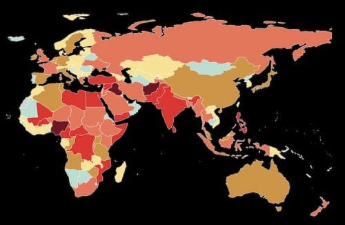 وتصدرت أفغانستان والعراق ونيجيريا الدول الأكثر عرضة لمخاطر الإرهاب، لتتقاسم الرتب الثلاث الأولى بنفس الترتيب، أما الولايات المتحدة الأمريكية فحلت في الرتبة 29، فيما جاءت فرنسا في الرتبة 38.