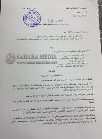 وصدر المرسوم الأول أياماً قليلة بعد تنصيب ولد الغزواني رئيساً للبلاد في شهر أغسطس 2019.