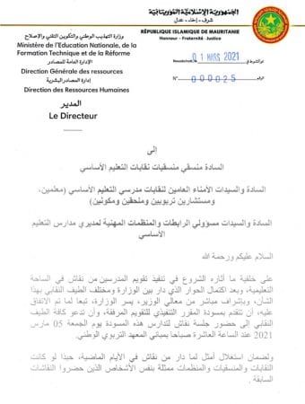 وأشارت الوزارة إلى أن المسودة الجديدة تأتي بعد «حوار دار بين الوزارة ومختلف الطيف النقابي»، قبل أن تضيف أنه «تبعا لما تم الاتفاق عليه، تتقدم بمسودة المقرر التنفيذي للتقويم المرفقة، وتدعو كافة الطيف النقابي إلى حضور جلسة نقاش لتدارس هذه المسودة».