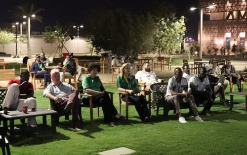 ونشرت صفحة السفارة على الفيسبوك صورا تظهر فيها السفيرة وهي تشاهد المباراة في باحة السفارة.