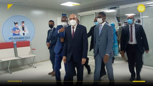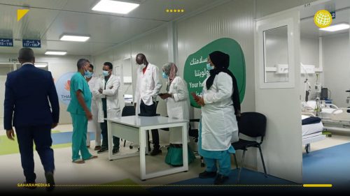 وتجول الرئيس الموريتاني والوزير الأول في أجنحة المستشفى الإماراتي الميداني، الذي يتألف من جناحين أحدهما مركب من الألواح الجاهزة، والثاني متنقل مصنوع من الخيم والحاويات، ويضم الجناح الأول مشفى بسعة 120 سرير منها 24 سرير عناية مركزة، بالإضافة إلى «التجهيزات الطبية الضرورية للحجز والتكفل بمرضى كوفيد – 19».