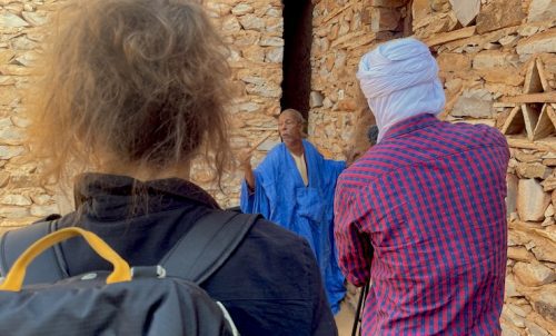 يتحدث «سيف الإسلام» بلغة فرنسية استعراضية، ويحكي للسياح عن أطلال مدينة شنقيط الأولى «آبير»، وعن العهد الثاني للمدينة وعن مؤسسيها، يتفاعل السياح مع سرده، مرة يتعجبون وأخرى يضحكون من النكت التي يطلقها بعفوية.