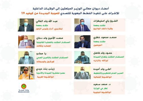 أوفدت وزارة الصحة الموريتانية، عددا من أعضاء ديوان وزير الصحة، ضمن بعثات إلى الولايات الداخلية، للإشراف على تنفيذ الخطط الجهوية للتصدي للموجة الحالية من جائحة كورونا.