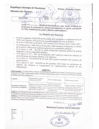 بدأت الحكومة الموريتانية تطبيق ما سمته “لا مركزية” تسديد رواتب الموظفين العموميين، وذلك من خلال وجود أشخاص يتولون تسديد الرواتب في كل قطاع وزاري، بعد أن كان ذلك ممركزا بيد وزارة المالية.