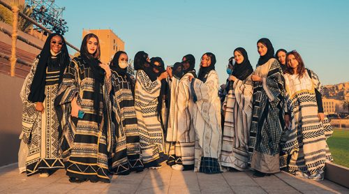 أغلبُ الحاضرين شبان وشابات، يرتدون أزياء تقليدية صارخة البداوة، وفي أيديهم آخر صيحة من الهواتف، بدا واضحًا في عيونهم مزيجُ البداوة والحداثة، وهم يتفاعلون مع المسرحية الغنائية ويهتفون للعروض الضوئية التي تحكي قصة تأسيس دولتهم.