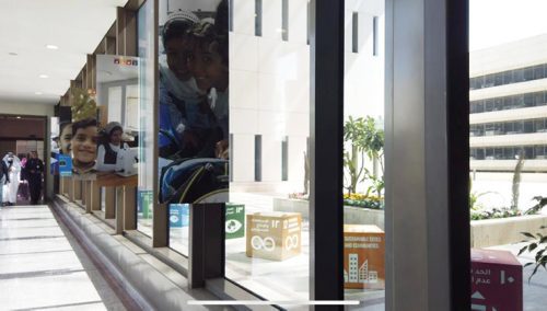 بدا مقر الصندوق وكأنه هيئة أممية، حيث علقت على أساطينه لوحات تحمل وجوه أطفال ونساء ورجال، من ألوان وأعراق وشعوب شتى، جميعهم نجح الصندوق السعودي في تغيير حياتهم، من إندونيسيا إلى موريتانيا، مرورًا بباكستان وبوركينا فاسو والصومال والأردن والجزائر.