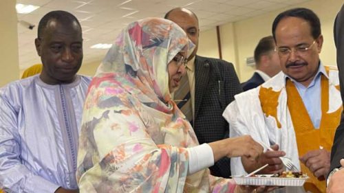 في باحة الأكاديمية الدبلوماسية بنواكشوط، تشرح “سلمى التجاني” أمام جمعٍ من الدبلوماسيين طريقة تحضير طبق “الملوخية”، بوصفه أحد أشهر الأطباق الشعبية في بلدها السودان، اختارته ليمثل بلدها في المعرض الأفريقي للأطباق التقليدية الذي نظمته وزارة الخارجية الموريتانية، اليوم الأربعاء، احتفاء بذكرى الوحدة الأفريقية.