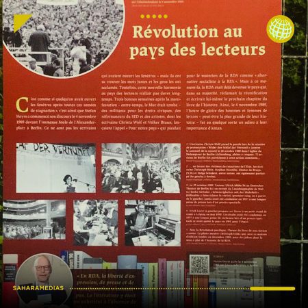 في باحة السفارة الألمانية، أقامت السفيرة معرضًا لتاريخ مقاومة سلمية وثقافية قام بها الشعب الألماني من أجل توحيد دولتهم، قبل انهيار جدار برلين.
