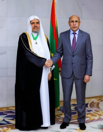 وشح الرئيس الموريتاني، محمد ولد الشيخ الغزواني، الأمين العام لرابطة العالم الإسلامي، رئيس هيئة علماء المسلمين، الشيخ الدكتور محمد بن عبد الكريم العيسى، وسام الاستحقاق الوطني.