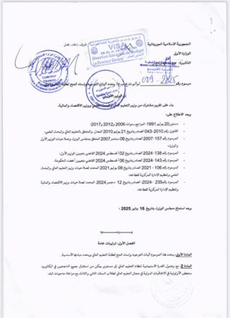 وأكد المرسوم أيضاً أنه مع زيادة القدرة الاستيعابية لنظام التعليم العالي في موريتانيا، والتي ستسمح باستيعاب جميع الناجحين في امتحان البكالوريا، ستُعطى الأولوية في الاتفاقيات الدولية في مجال التعليم العالي لطلاب مراحل الدراسات العليا (السلك الثاني والثالث)، مع مراعاة احتياجات البلاد في التخصصات المطلوبة.