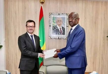 تسلّم محمد سالم ولد مرزوك، وزير الشؤون الخارجية والتعاون الإفريقي والموريتانيين في الخارج، يوم الخميس، نسخة من أوراق اعتماد الدبلوماسي الفرنسي إيمانويل بيسنييه بصفته سفيراً جديداً لفرنسا لدى موريتانيا.