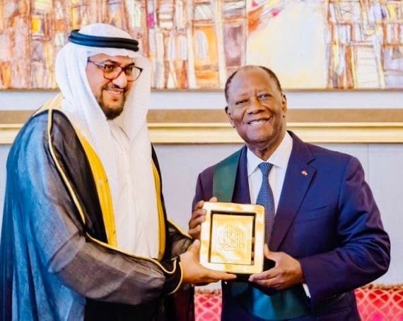 سلم الجائزة، الشيخ المحفوظ بن بيه، الأمين العام لمنتدى أبوظبي للسلم، خلال حفل أقيم في القصر الرئاسي بأبيدجان بحضور علي يوسف النعيمي، سفير دولة الإمارات في كوت ديفوار، وعدد من أعضاء الحكومة الإيفوارية، إلى جانب وفد من منتدى أبوظبي للسلم يضم خبراء وممثلين عن منظمات دولية معنية بالسلام.