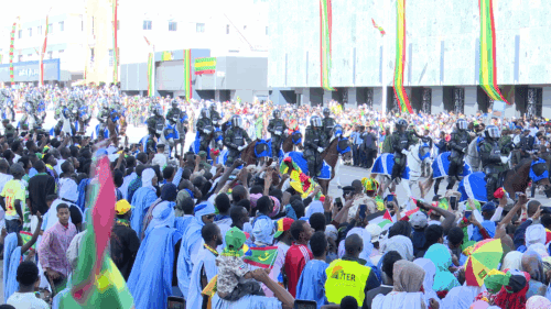 وأقيم العرض العسكري على طول شارع جمال عبد الناصر امتدادا من ملتقى طرق “البراد” مرورا بملتقى صباح وصولا الى ساحة الحرية ، حيث نصبت منصة رسمية فيها الرئيس محمد ولد الشيخ الغزواني،و أعضاء الحكومة وكباء المسؤولين وأعضاء السلك الدبلوماسي المعتمد في موريتانيا.