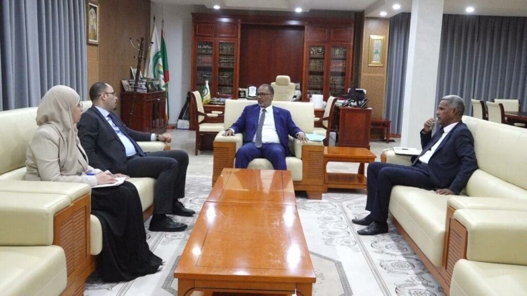 وجرى تسليم ملف المناقصة من طرف السفير الجزائري في موريتانيا أمين صيد، خلال لقاء خُصص لبحث علاقات التعاون الاقتصادي والتجاري بين البلدين، خاصة بين الفاعلين في القطاع الخاص.