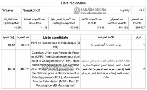 وتشير هذه النتائج الجزئية إلى أن الحزب الحاكم حصل على 50371 أصوات، أي ما يعادل نسبة 49,12 في المائة من الأصوات المعبر عنها.