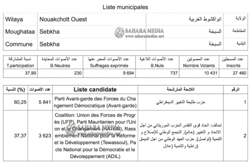 حزب طلیعة التغییر الدیمقراطي: 5841 صوتاً (60,25%)