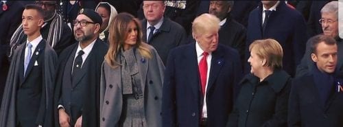 ظهر العاهل المغربي الملك محمد السادس، اليوم الأحد، في الصف الأول لقادة العالم المجتمعين في العاصمة الفرنسية باريس احتفالاً بالذكرى المئوية للهدنة التي أنهت الحرب العالمية الأولى.