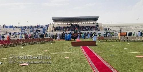 وسيلقي ولد ببكر خطاب ترشحه من على المنصة التي نصبت وسط الملعب، والتي رفعت عليها لافتة كبيرة تحمل شعار المرشح: « الآن الآن وليس غداً »، وفرش سجاد أحمر يربط المنصة بالمقصورة الرسمية، فيما وضعت عشرت المقاعد غير بعيد من المنصة ربما تكون مخصصة لكبار المدعوين.