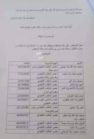 في غضون أيام قليلة بعد استقالة ولد أمات، أعلن 12 عضواً من المكتب التنفيذي لحزب التكتل استقالتهم، لينضموا إلى سرب المهاجرين السياسيين في واحد من أكثر مواسم الهجرة سخونة في موريتانيا.