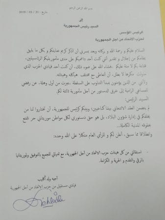 ولد اكليب برر استقالته في رسالة نشرها على « فيسبوك » بما قال إنه « التدخل المباشر لولد عبد العزيز في اختيار من سيخلفه في منصبه في الاستحقاقات الرئاسية القادمة ».