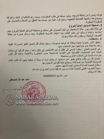 وجاء في إعلان صادر عن وكيل الجمهورية في نواكشوط الغربية إن المحكمة تضع حسابا على تطبيق واتساب (43204330) أمام الراغبين في رفع شكاية والمراجعين من إرسال موضوع الشكوى، وصور الوثائق والمستندات المرفقة عند وجودها.