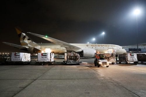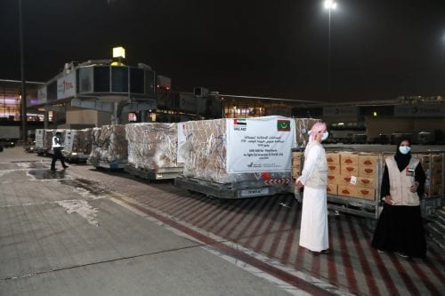 تسلمت الحكومة الموريتانية، اليوم السبت، من دولة الإمارات العربية المتحدة، 18 طنا من الإمدادات الطبية والغذائية لمواجهة جائحة «كورونا»، وفق ما أكد موفد «صحراء ميديا» إلى مطار نواكشوط الدولي أم التونسي.
