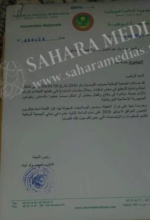 وقالت اللجنة في الاستدعاء الذي حصلت «صحراء ميديا» على نسخة منه، مخاطبة ولد عبد العزيز: «خلال جلسات الاستماع التي عقدتها اللجنة تم ذكركم بالاسم بصفة مباشرة في وقائع وأفعال يحتمل أن تشكل مساسا خطيراً بالدستور وبقوانين الجمهورية الإسلامية الموريتانية».