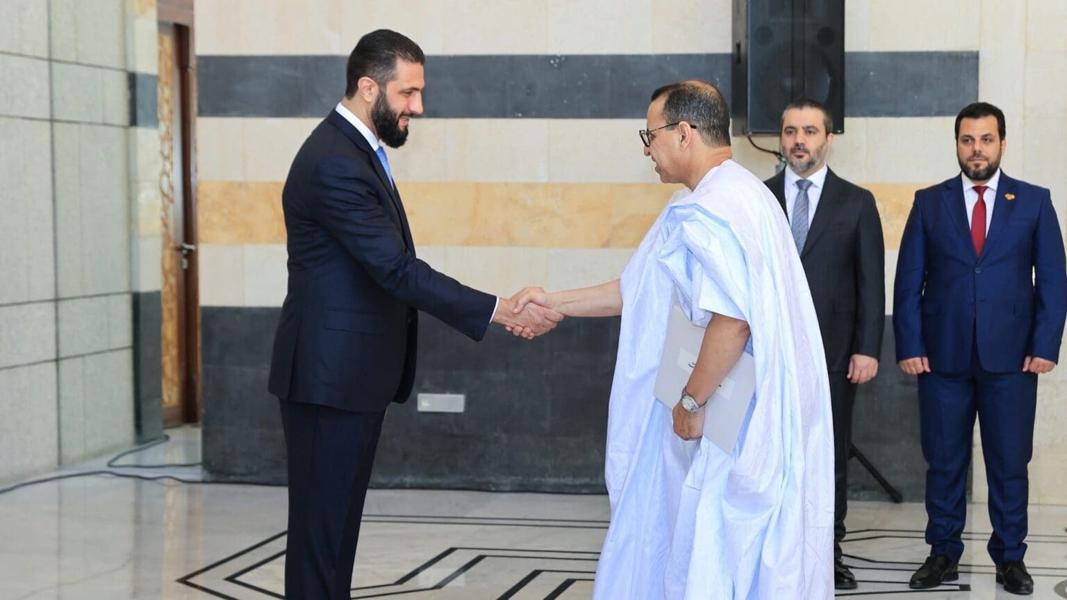 قدم السفير الموريتاني في العاصمة السورية دمشق، الطالب المختار الشيخ محمد المجتبى، أوراق اعتماده للرئيس السوري أحمد الشرع. واستقبل السفير الجديد لدى دمشق، من طرف الشرع بقصر الشعب، بحضور وزير الخارجية والمغتربين السوري أسعد الشيباني. وكان الرئيس محمد ولد الشيخ الغزواني قد عين ولد المجتبى سفيرا لموريتانيا لدى سوريا، يناير الماضي. وكان ولد المجتبى قد شغل منصب قنصل عام في الدار البيضاء بالمملكة المغربية؛ كما عمل مستشارا في سفارات موريتانية بالخارج.