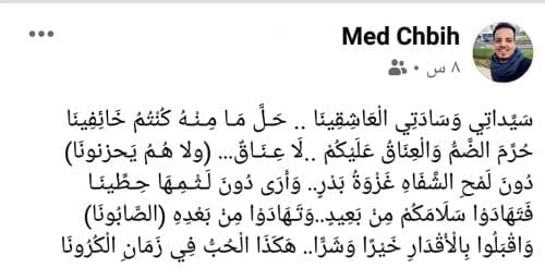 الشعر الفصيح، هو الآخر له حضور في عملية التوعية الموريتانيين، خاصة في ظل العادات الاجتماعية التي تفرض المصافحة والعناق الحار في بعض الأحيان، ونشر المدون محمد ولد الشبيه، هذه الأبيات: