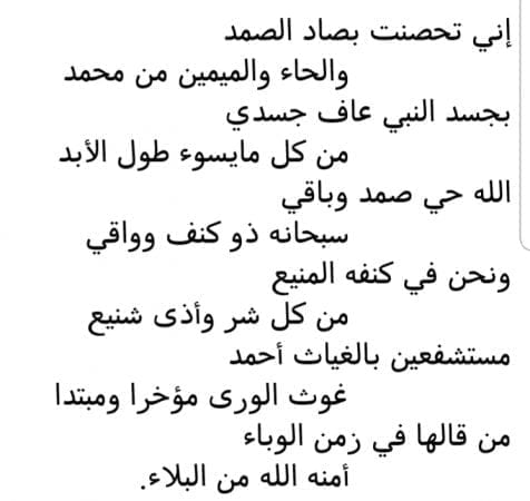 إني تحصنت بصاد الصمد / والحاء والميمين من محمد