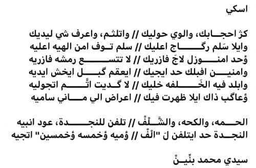 كز احجابك والوي حوليك / واتلثم وأعرف ش ليديك